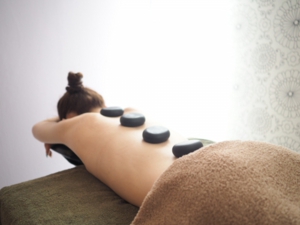 火山の溶岩が固まってに出来上がった玄武石を温め、アロマトリートメントした肌にその温めた石を使い全身をマッサージ
