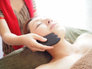 貴女様の肌質をチェックし、トリートメントを施し、玄武石のカッサを温め施術していきます。