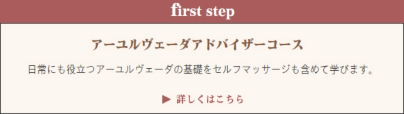 アーユルヴェーダとは?からしっかりアーユルヴェーダの内容を学び、ご自身のドーシャ[体質]を調べ自分を知ります。簡単なアーユルヴェーダセルフケアなども学ぶ事により、日々の生活にアーユルヴェーダを取り入れれるようになります。